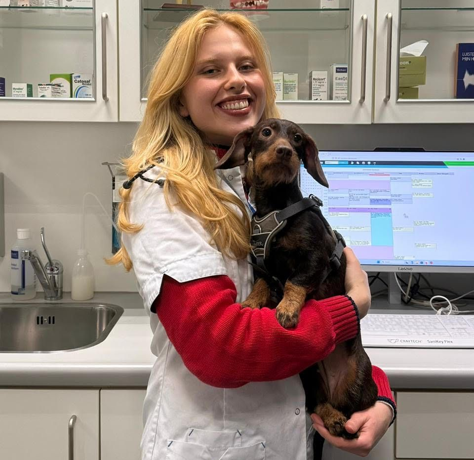 Ik werk nu sinds juli 2024 met veel plezier in de kliniek. Tijdens mijn opleiding tot paraveterinair bij Lentiz MBO Maasland heb ik hier stage gelopen en na mijn afstuderen werd mij aangeboden hier te blijven.